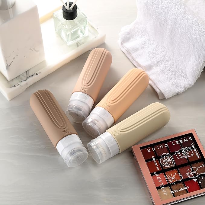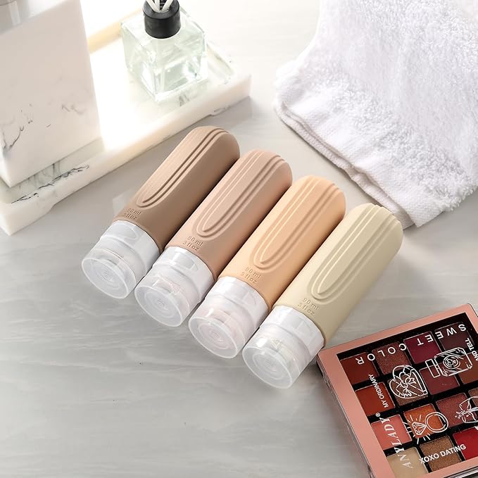 Travel Bottles for Toiletries, Tsa Approved 3oz Travel Size Containers BPA Free Leak Proof Refillable Liquid Silicone Squeezable Travel Accessories for Shampoo Conditioner Lotion (4 Pack)