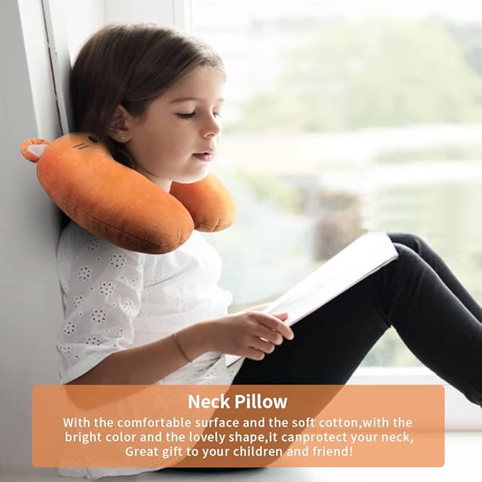 EKDJKK Travel Pillow for Kids, Cute Animal Neck Pillow Support U Shaped Cushion Plush Soft Rest Reading Pillow Sleeping Pillow for Airplane Train Car (Orange Cat)