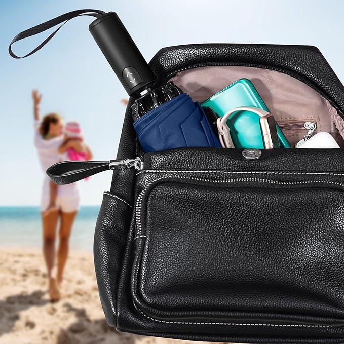 - Double Canopy Design - Have you ever experienced the umbrella stand turning inside out in a strong gust of wind? The single canopy umbrella can't resist strong winds and bends, which will make you wet in the rain winds. Our durable windproof umbrella compact features a double canopy vented design that lets winds pass through without water in! Provides great stability even to standing in the wind and rain.