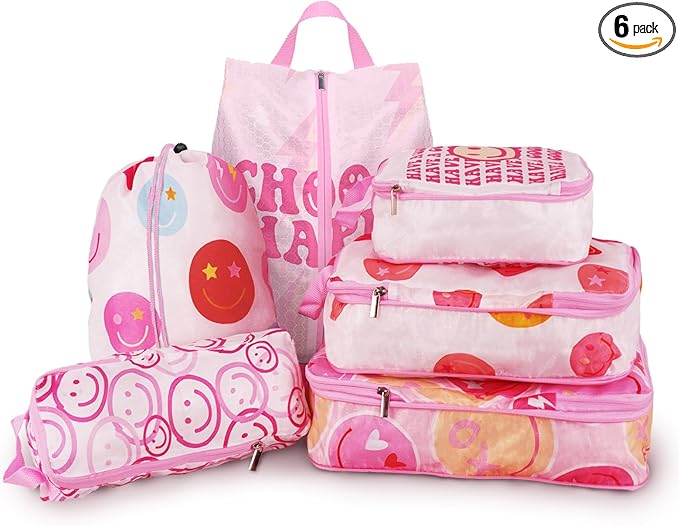 6 Pcs Compression Packing Cubes, Packing Cubes for Travel, Waterproof Luggage Organizer Bags Set, Cute Packaging Cubes for Women Kids Backpack Carry-Ons