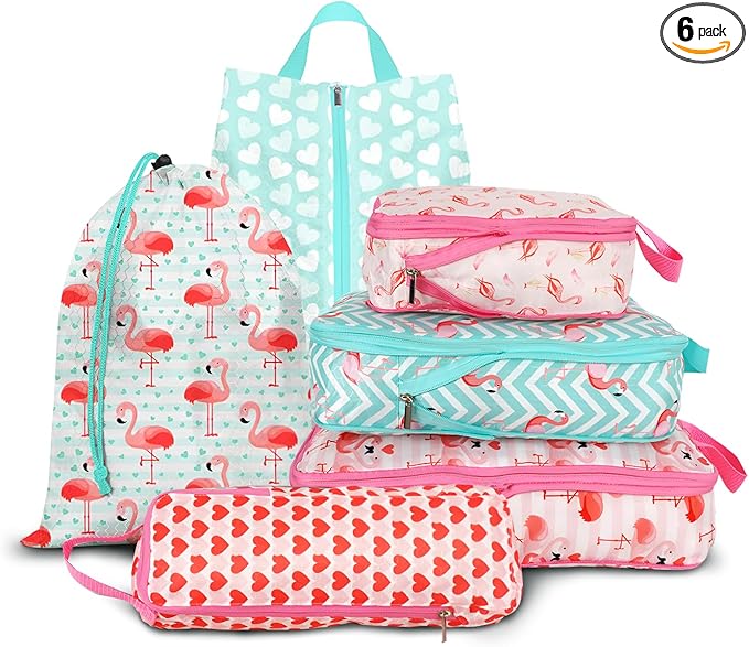 6 Pcs Compression Packing Cubes, Packing Cubes for Travel, Waterproof Luggage Organizer Bags Set, Cute Packaging Cubes for Women Kids Backpack Carry-Ons
