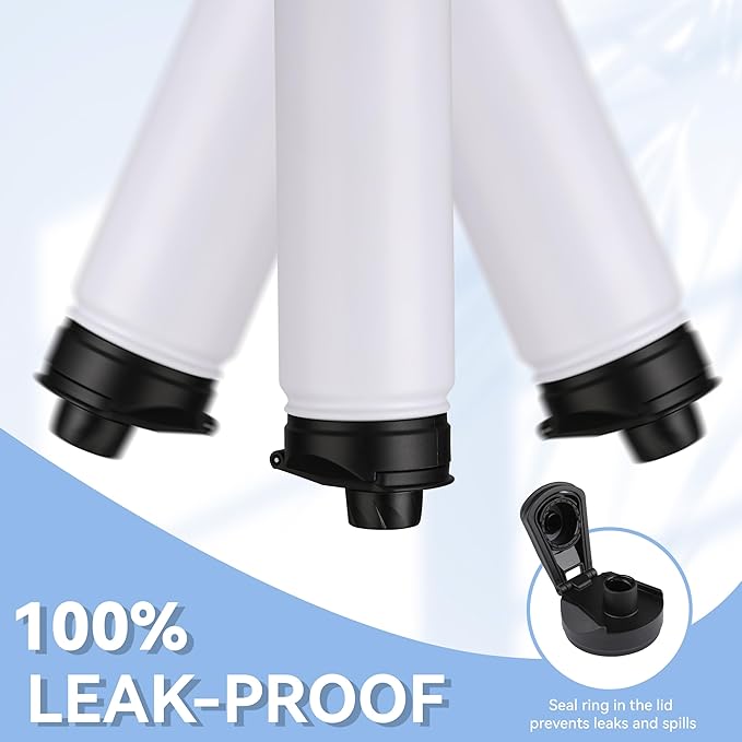 - 【SPOUT LID & STRAW LID】Available in 2 leak-proof covers that can be switched at any time: 1 flip-up straw lid, 1 easy-twist spout lid. All caps are leak-proof, so you can drink on the go without spilling, and don't worry get wet and putting it in your bag. Its wide-mouth opening makes your ice or fruits filling and cleaning easy and fast.