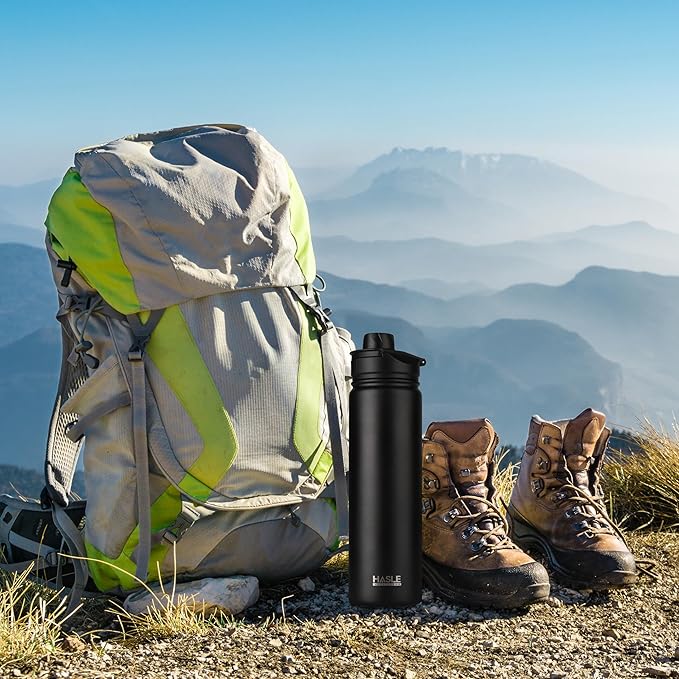 HASLE OUTFITTERS Insulated Water Bottle 22 oz Double Wall Stainless Steel Water Bottle Wide Mouth with Straw Lid & Spout Lid Keeps Cold or Hot(Black,8)
