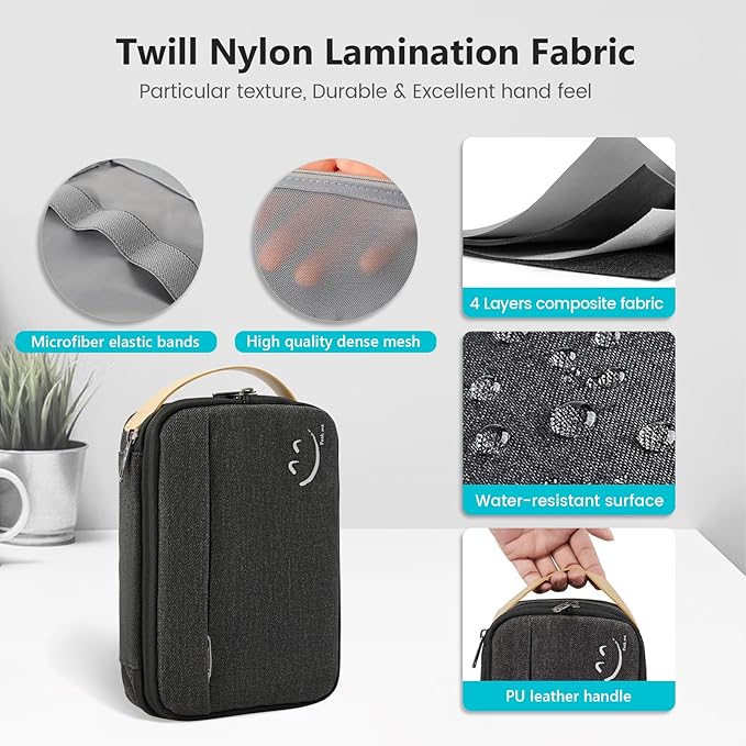 - Durable And Waterproof Tech Case Organizer: This electronics organizer is crafted from high-quality nylon material that is waterproof, scratch-resistant, and lightweight. Besides, this cord case organizer can prevent wires from getting entangled