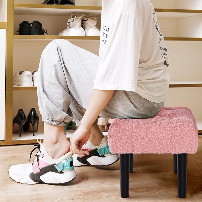 - 【MULTI-FUNCTION】:This stylish small footrest ottoman can be used when getting dressed in the bedroom, putting on shoes at the entryway, extra seating, having a rest on a chair, or using it as a footrest under the desk. Elegant fashion design allows it to fit in any room, Ideal for the living room, office, or entryway.