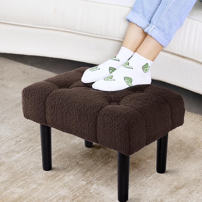 - 【AESTHETIC & COMFORTABLE】:The cover of the ottoman footrest stool is made of teddy fleece, which is skin-friendly and comfortable. This small wood ottoman is perfect for any style of home decor.