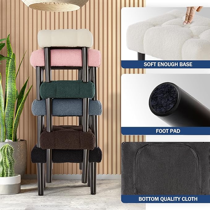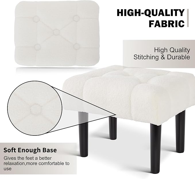 - 【AESTHETIC & COMFORTABLE】:The cover of the ottoman footrest stool is made of teddy fleece, which is skin-friendly and comfortable. This small wood ottoman is perfect for any style of home decor.