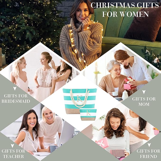 - 【MULTIFUNCTIONAL GIFTS TOTE BAG】In addition to being a beach bag, this product has multiple functions. You can use it as a shopping bag, travelling bag or daily carry bag, which is highly practical and diversified.The classic embroidered monogram, makes the beach tote bag is suitable for Wedding Day, Valentine's Day, Anniversary, Birthday, Mother's Day, Teacher's Day ,which is the personalized gift for women