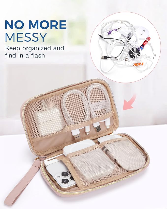 BAGSMART Cord Organizer Travel Cable Organizer Bag Tech Electronic Organizer Travel Case, Travel Essentials for Charger, Cable, Phone, Flash drive, Single Layer - Pink