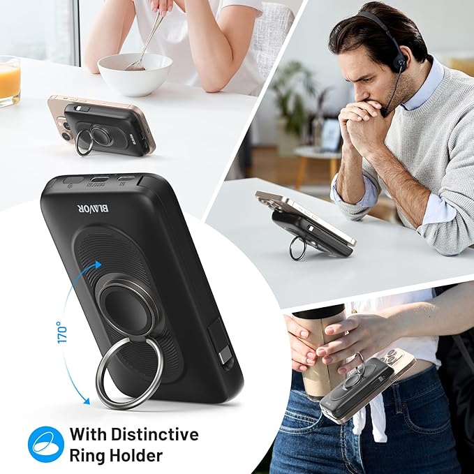 BLAVOR for Magsafe Portable Charger with Built-in Cables, USB C 20W Fast Charging, 10000mAh Magnetic Wireless Power Bank, Battery Pack with Stand for iPhone 16/15/14/13/12, Powerbank for Apple Watch