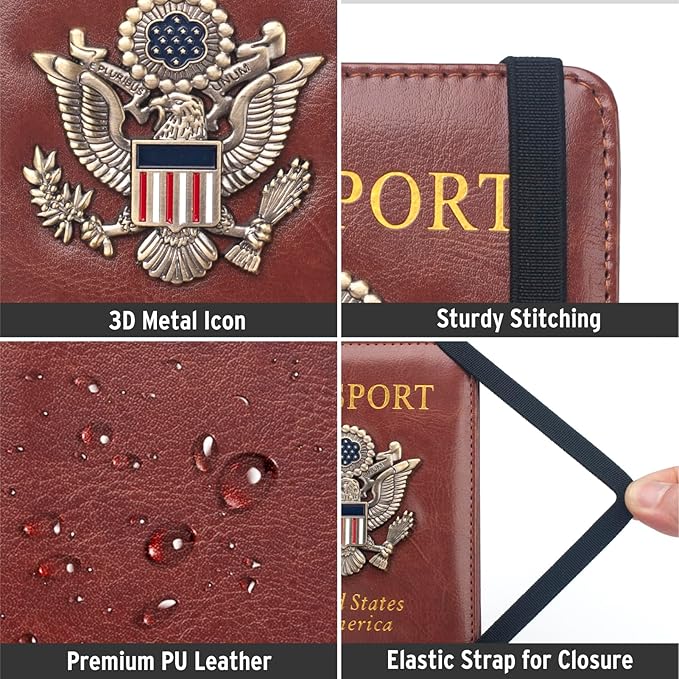 - Personalized Travel Passport Holder----Designed with 3D US metal eagle on the cover, the passport holder wallet looks cool and beautiful, a wonderful gift for men or women.