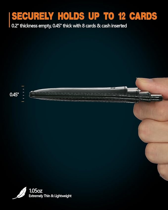 - PLENTY OF ROOM: This 8-slot card case easily holds your driver's license,credit cards,debit cards and membership cards, making your work and travel more convenient