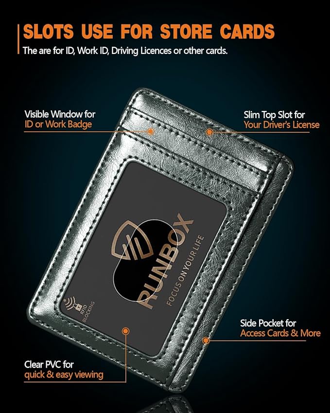 RUNBOX Slim ID Cases Minimalist Front Pocket RFID Blocking Leather Wallets for Men and Women Card Holder Wallets Gifts for men