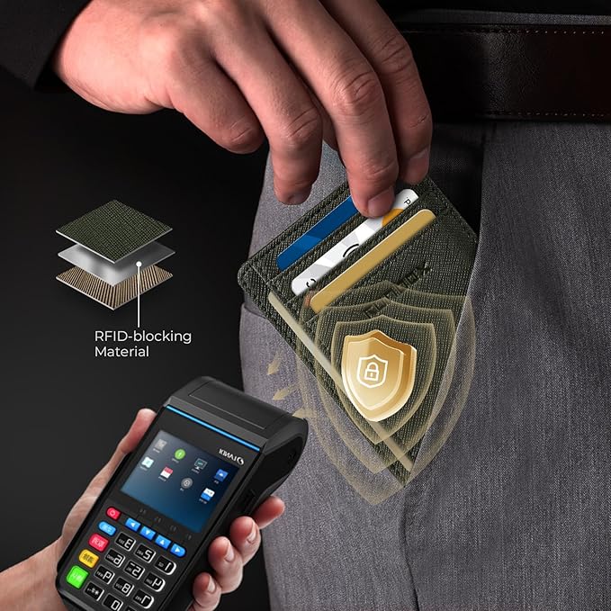 - EFFECTIVELY BLOCKS RFID SIGNALS: Outfitted with advanced RFID blocking technology, these slim wallets for men and women block electronic signals to keep your identity protected while you travel, shop or explore.
