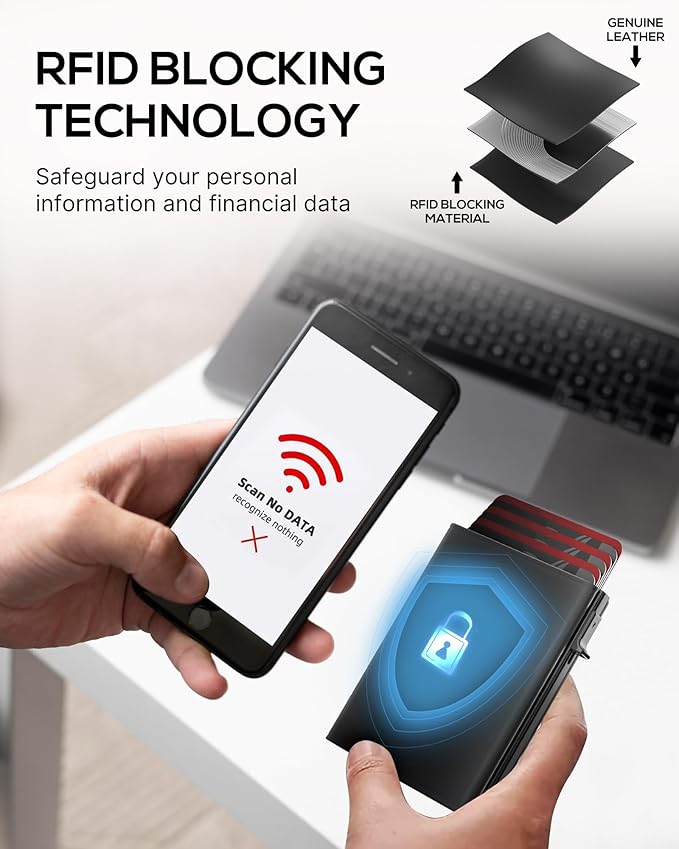 - 【ADVANCED RFID BLOCKING】 Safeguard your personal and financial information with confidence. The secure wallet features cutting-edge RFID blocking technology, effectively creating a shield against unwanted digital intrusion, leaving you in control of your data.