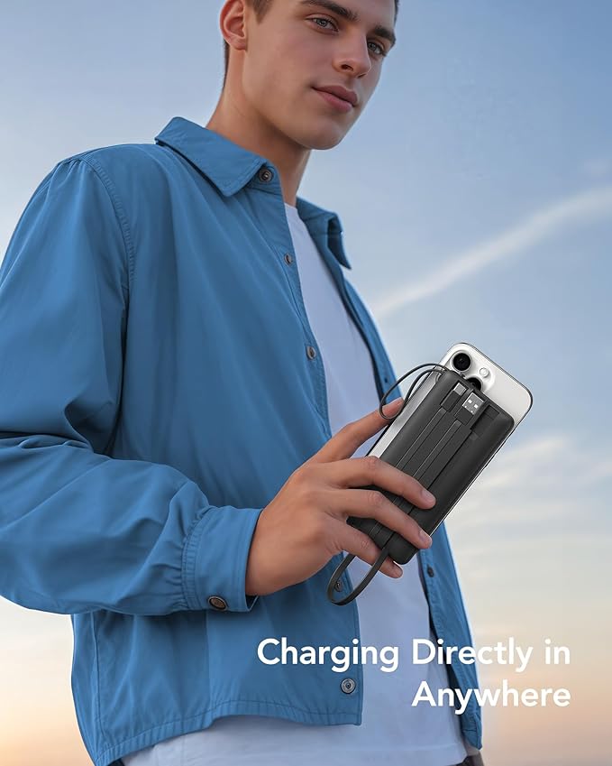 - 【Portable Charger Built-in 4 Cables】Built in cable compatible with iPhone 16/15/14/13/X/XR, Samsung Galaxy S24/S23/S22/S21/S10/S9/S8/Galaxy A51/52/53/54/55/Note 20/10, Google Pixel series, and more USB-C devices. directly charging in anywhere,also built in USB cable for charging power bank itself, you don't need take any cords when going out and travel.