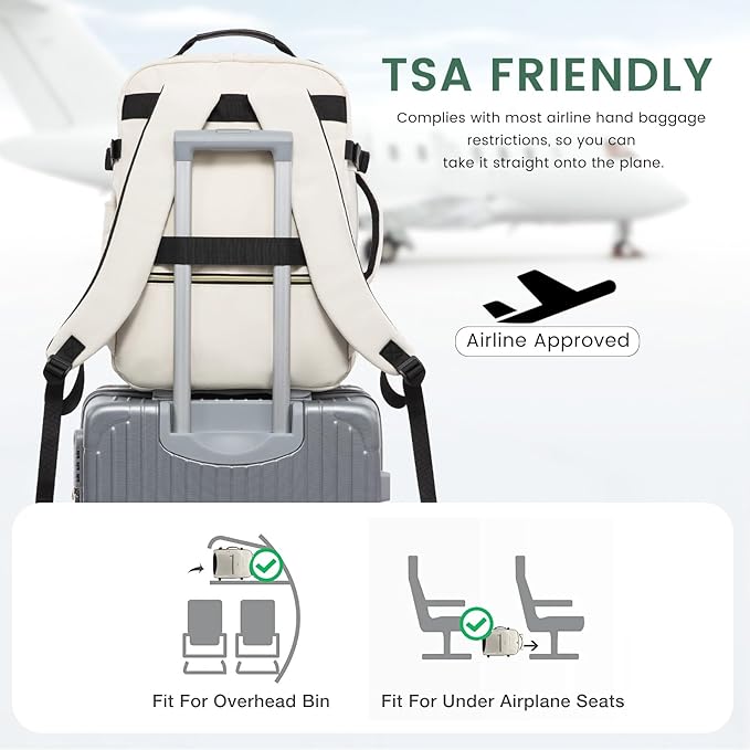 - ✈️【BACKPACK FOR TRAVELING ON AIRPLANES】With an 18*14*8 inches size, this travel backpack meets the standard of personal item bags of airlines. It can be put on the luggage set and under the seat easily. The luggage strap on the back of the backpack allows it to be stably attached to a suitcase.