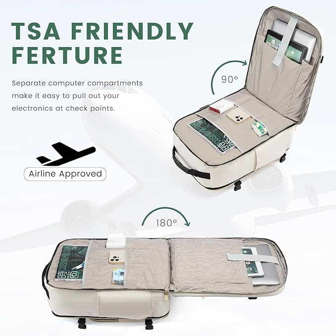 - 👍【PRACTICAL BOX STRUCTURE DESIGN】 The carry-on backpack can be expanded 180° with a box structure, more convenient for you to pack things up. The dedicated electronic product compartment on the back can be used to store your electronics, which can be quickly taken out when going through the security check.