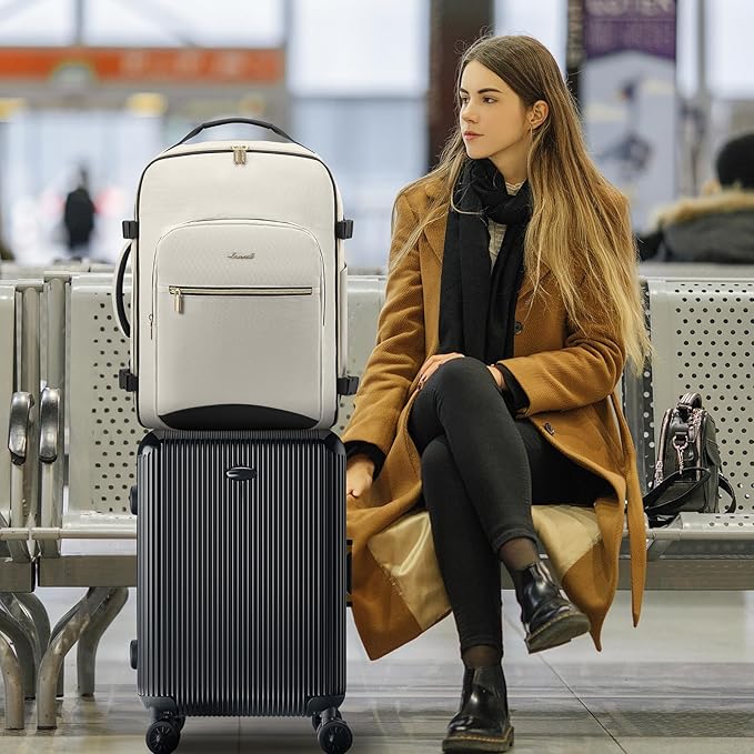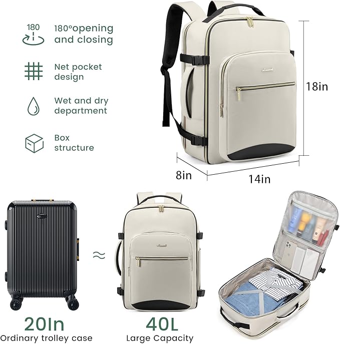 LOVEVOOK 40L Large Travel Backpack for Women Men, 17 Inch Carry on Backpack for Traveling on Airplane, Personal Item Travel Bag Airline Approved, Business Causal Weekender Backpack, Beige-Black