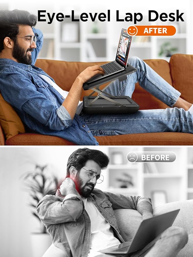 SAIJI Height & Tilt Adjustable Lap Desk, Portable Laptop Stand for Bed, Car, Couch and Recliner, Foldable Lap Desks - Up to 15.6 Inch Laptops