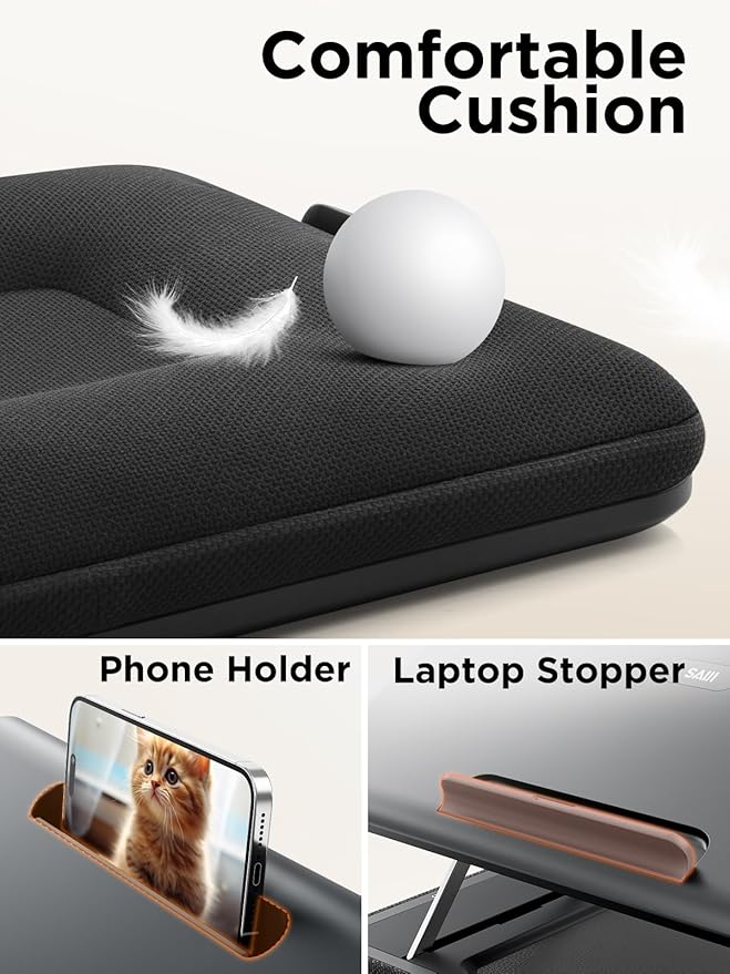 - Comfortable Lap Desk with Cushion: The laptop bed tray's microbead pillow cushion is soft, comfortably conforms to your lap, helps keeps the lap desk surface stable while in use, and steadies your work in home office.