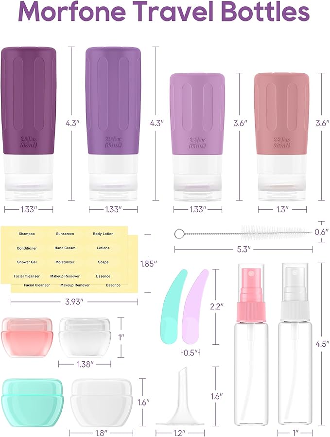 Morfone 16 Pack Travel Bottles Set for Toiletries, TSA Approved Travel Containers Leak Proof Silicone Squeezable Travel Accessories 2oz 3oz for Shampoo Conditioner Lotion Body Wash (BPA Free)