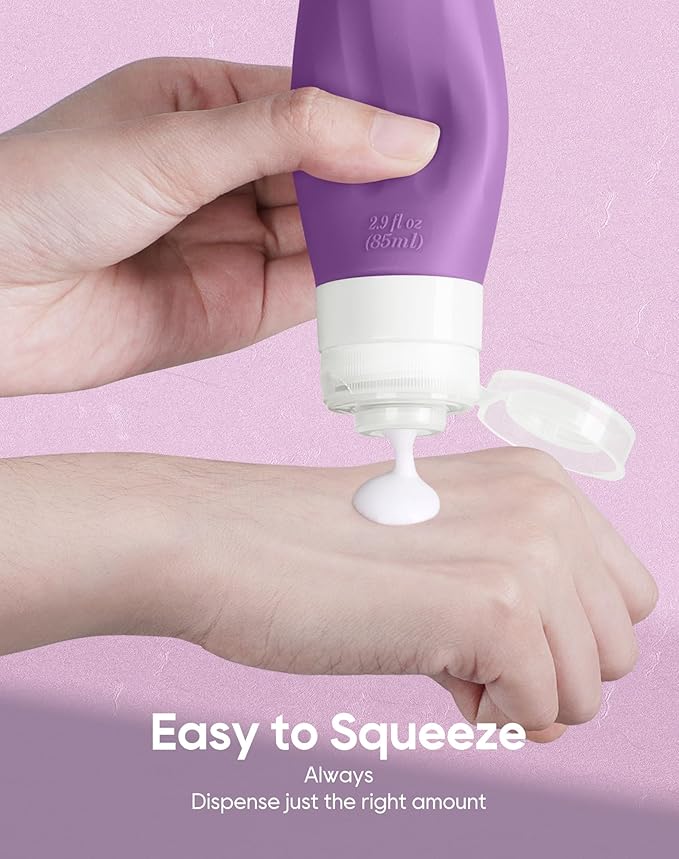 - 【SILICONE & SQUEEZABLE】Made of food grade Silicone which is BPA free and non-toxic, feel soft, flexible and comfortable instead of hard like traditional plastic travel bottles. The silicone is thick and durable but can be squeezed easily