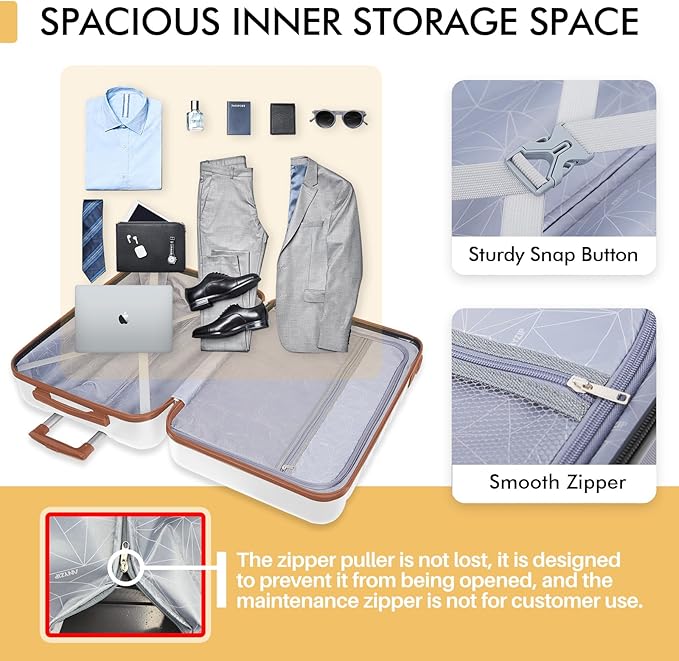 - [Larger storage space] We have adopted a more scientific structure design to maximize the use space in the box, and reasonable internal partitions make your luggage more tidy and can accommodate more.