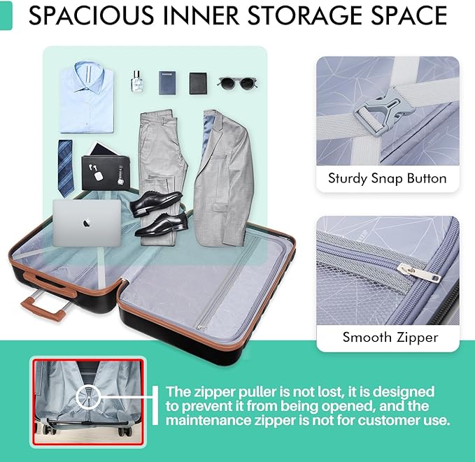 - [Larger storage space] We have adopted a more scientific structure design to maximize the use space in the box, and reasonable internal partitions make your luggage more tidy and can accommodate more.