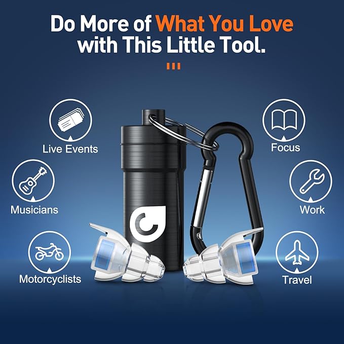 - HIGH FIDELITY EAR PLUGS - You may experience muffling when you wear foam-based ones. But those days are gone. You will be able to hear different sound frequencies and talk to people with these HIFI earplugs since they reduce noise evenly and maintain the full frequency.