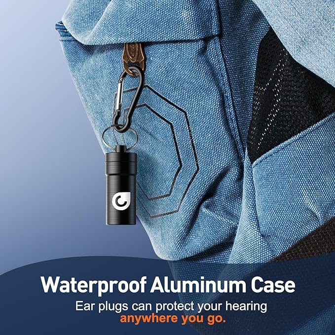 - REURE CAN PROTECT YOU ANYWHERE - The compact aluminum case with rubber seal is waterproof and dustproof. You can carabiner it on your key chain, jeans, or backpack and it can follow you anywhere. Ideal for concerts, noise sensitivity, tinnitus relief, motorcycles, musicians, sports events, flying, sleeping noise cancelling, etc.