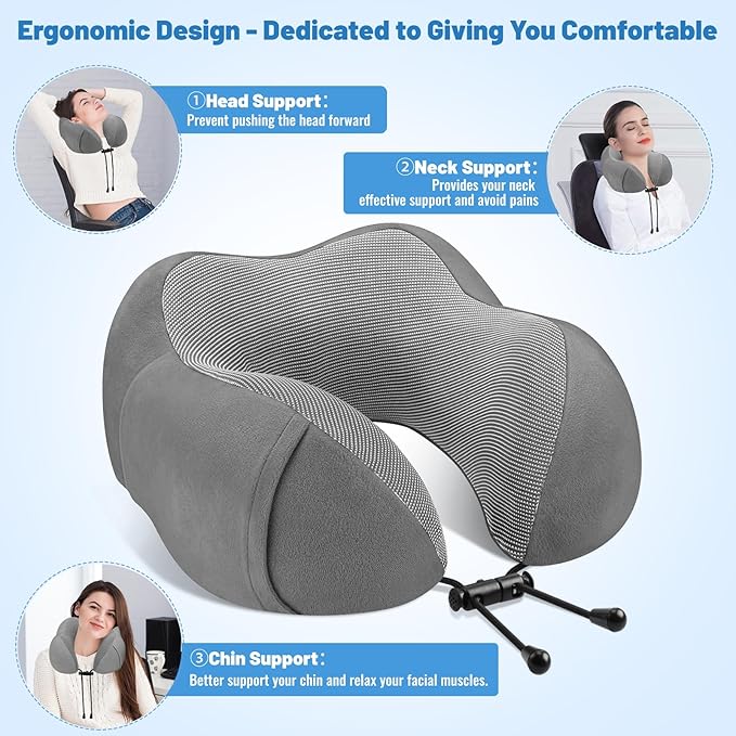 - 【Ergonomic Head/Neck/Chin Support Design】Our travel neck pillow can fit and support your head and neck well through the unique curve design, reducing the burden on your head and neck. With the added adjustable cord, you can adjust the angle and looseness of the neck pillow at any time to meet different neck size needs, which is good for protecting the cervical vertebrae