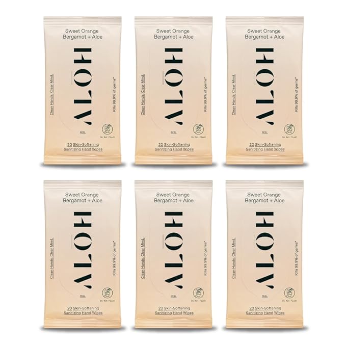 - LUXURY HIGH QUALITY FEEL: Many cloth sanitizing wipes feel rough, and quite frankly, cheap. Our hand wipes are luxuriously soft, like a high-quality baby wipe, acting as skin-hydrating treatment in one step, all while refreshing the senses with pure essential oils. Our travel-friendly ALŌH Sweet Orange Bergamont Skin Softening Hand Sanitizing Wipes help keep your hands clean with a single swipe without stripping skin, thanks to hydrating (never sticky!) aloe vera.
