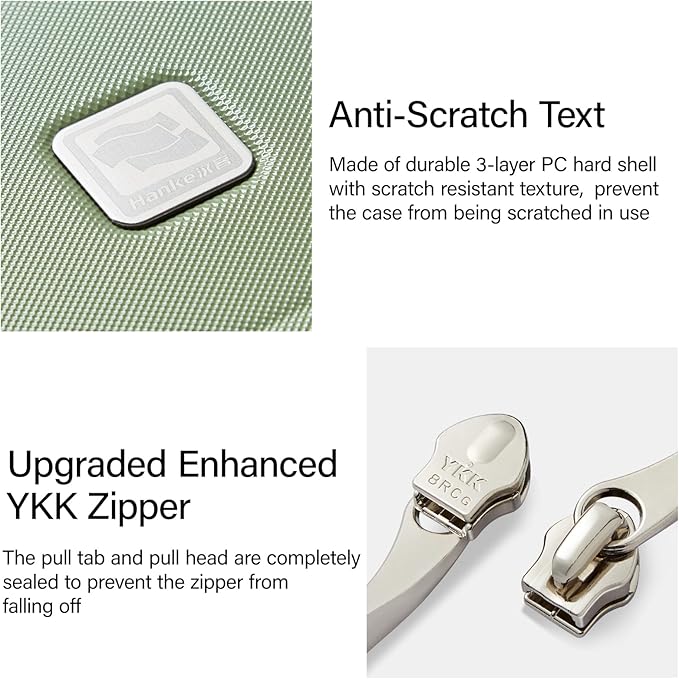 - Aluminum Frame & 3-Layer 100% PC Hard Shell: Hanke wide handle luggage reinforce with built-in aluminum alloy frame (non-removable) to resist impacts.The shatterproof material prevents cracking. Lightweight yet 30% tougher than standard hardside suitcase materials – perfect for rough baggage handling