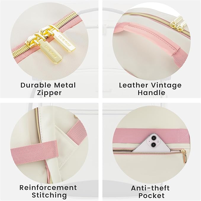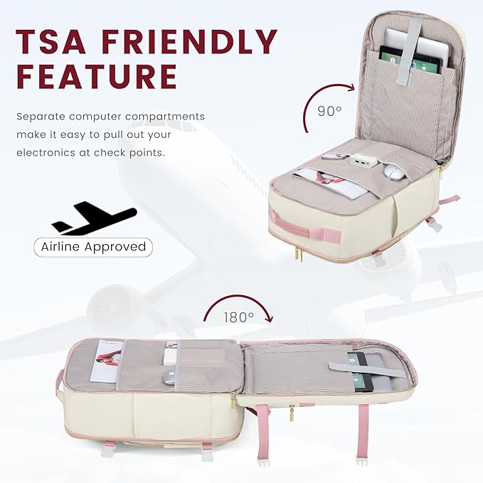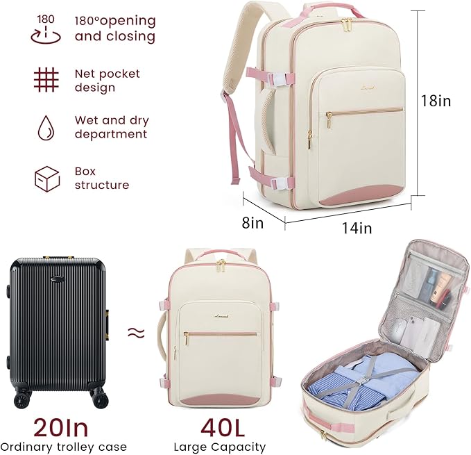 LOVEVOOK 40L Large Travel Backpack for Women Men, 17 Inch Carry on Backpack for Traveling on Airplane, Personal Item Travel Bag Airline Approved, Business Causal Weekender Backpack, Beige-Pink