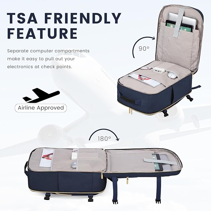 - 👍【PRACTICAL BOX STRUCTURE DESIGN】 The carry-on backpack can be expanded 180° with a box structure, more convenient for you to pack things up. The dedicated electronic product compartment on the back can be used to store your electronics, which can be quickly taken out when going through the security check.