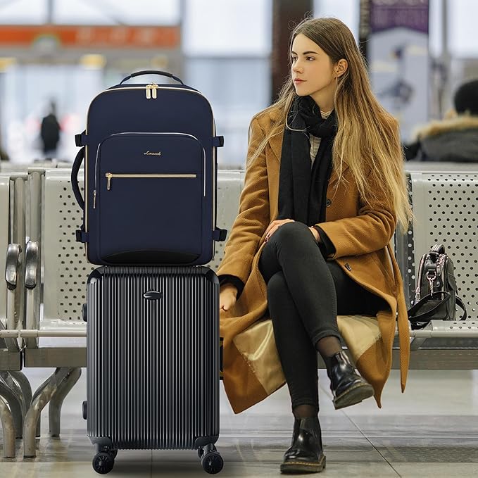LOVEVOOK 40L Large Travel Backpack for Women Men, 17 Inch Carry on Backpack for Traveling on Airplane, Personal Item Travel Bag Airline Approved, Business Causal Weekender Backpack, Blue-Black