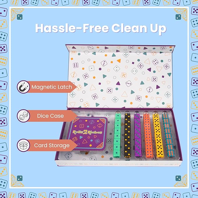 - Card Game, Board Game & Dice in One Complete Tabletop Game - Rolls 2 Riches blends the best of board games, card games, and a fun dice set into one thrilling experience. With fast-paced gameplay and smart strategy, it’s a top pick for games for adults, family games, and games for kids 8–12 alike.