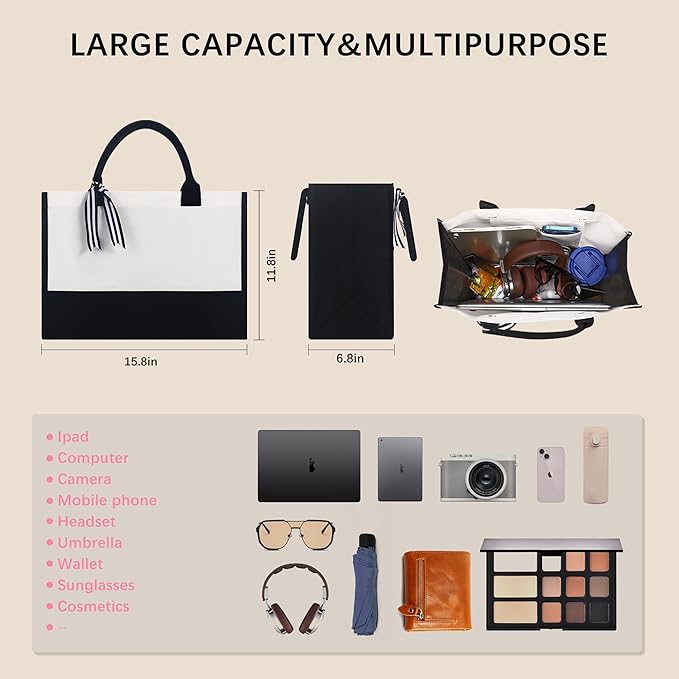 - 【Package includes】4 PCS tote bags,with dimensions of 15.8×11.8×6.8 inches (40×30×17 cm),easily accommodating A4 documents,laptops,and daily necessities