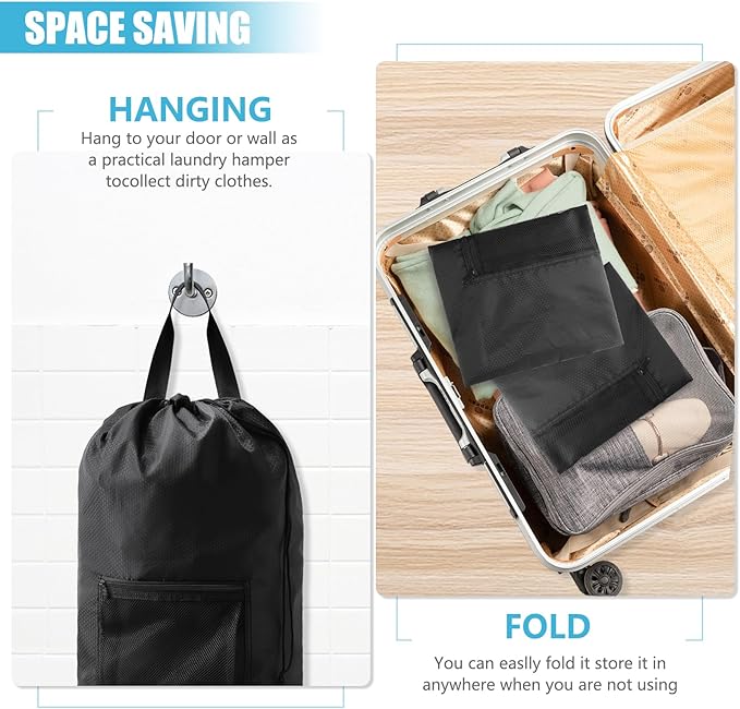 - [Suitable for Multi-Occasion] - The travel laundry bag is easy to fold and store in the suitcase, suitable for dorm, apartment, college,home, laundry shop, hiking, camping, or picnics.