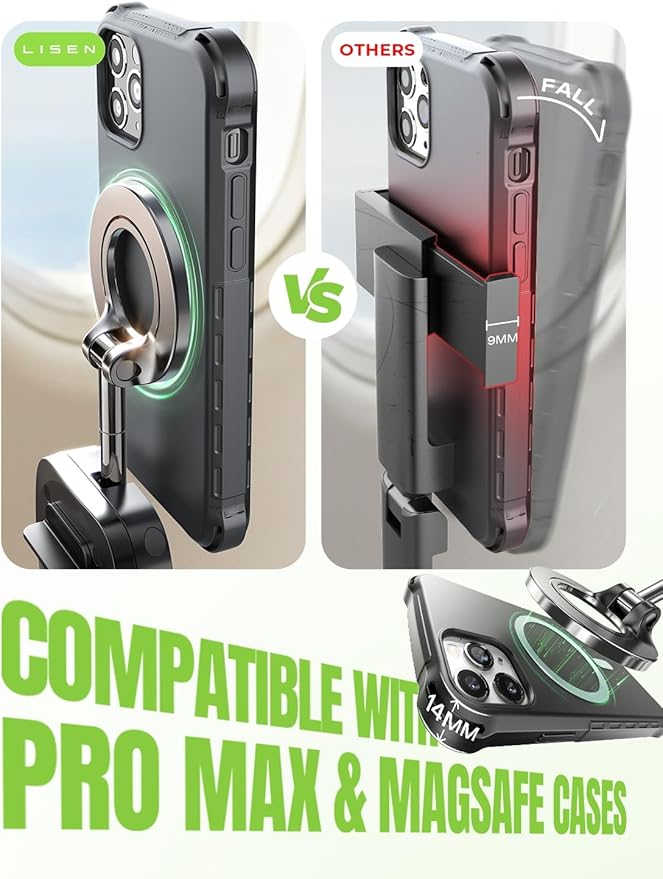 - 360° Flexible MagSafe Travel Stand:The LISEN for MagSafe Airplane Phone Holder Mount locks your phone in 0.1 seconds, offering 360° rotation for perfect viewing angles. A TikTok Trend Items TOP10, loved by creators for video recording. TIKTOK monthly Sales 50K+
