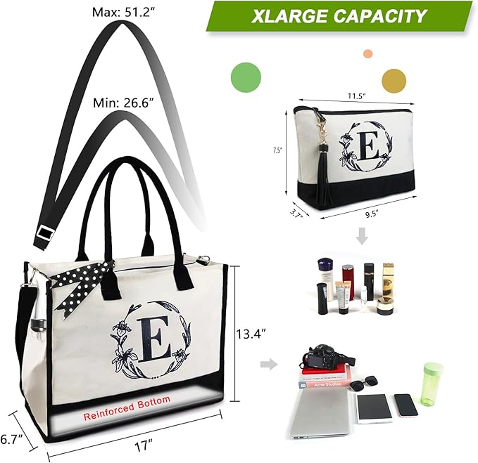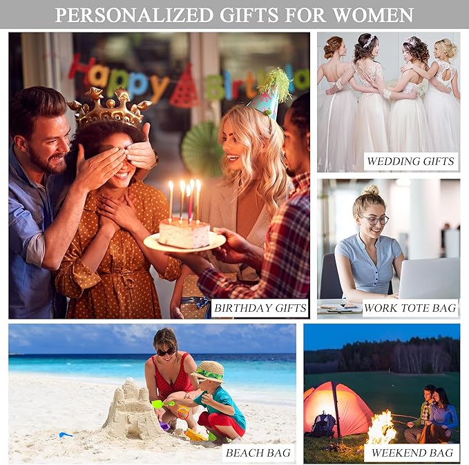- PERSONALIZED GIFTS & MULTI-USE: The personalized initial tote bag is a unique gift for your mom, sisters, friend, coworkers, teacher, hostess, bride, bridesmaids, employee.When it comes to Valentine's Day,Mother's Day,Teacher's Day. Our monogrammed tote bags makes your gift even more special. You can use this initial tote on many occasions,such as a work bag, travel bag, beach bag, holiday gifts, birthday gift, retirement gift, thank you gifts, relaxation gifts, holiday gifts.