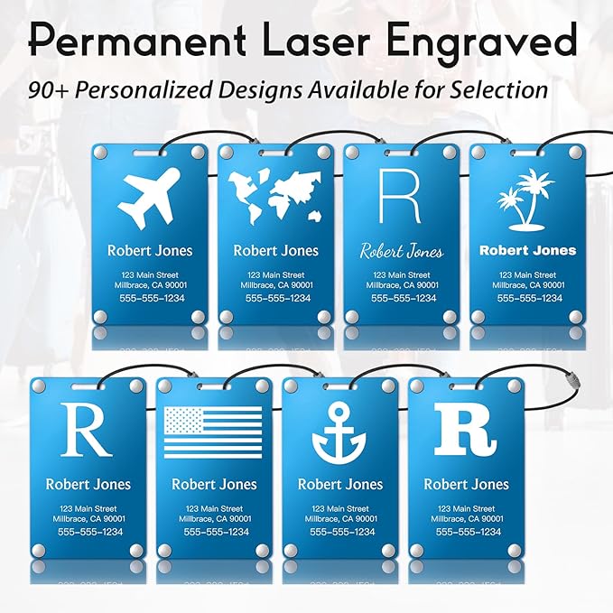 Personalized Luggage Tags: Custom Metal Luggage Tags for Suitcases, Backpacks and Bags with Your Personalized Text (Blue)