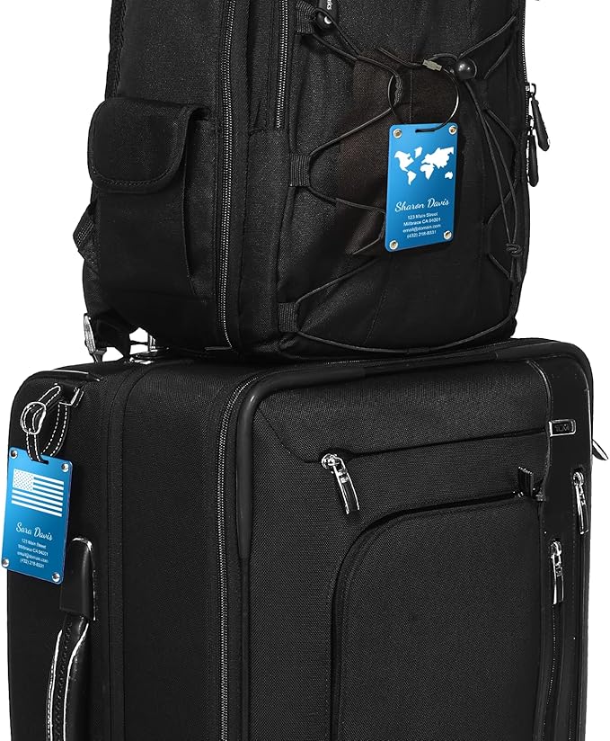 - METAL LUGGAGE TAGS: Heavy duty, double-layer aluminum construction for durability.