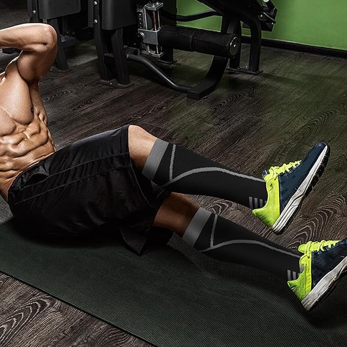 • VERSATILE STYLE FOR ALL OCCASIONS: Our compression socks for men and women fit various lifestyles. Whether you're running, traveling, nursing, flying, pregnant, or need muscle support, these long compression socks men have you covered with high-quality performance. Suitable for all sports, cycling, skiing, mountain climbing, football, hiking, jogging, tennis, marathon, hockey, soccer, basketball, golf, etc. From daily wear to special occasions, experience lasting comfort.