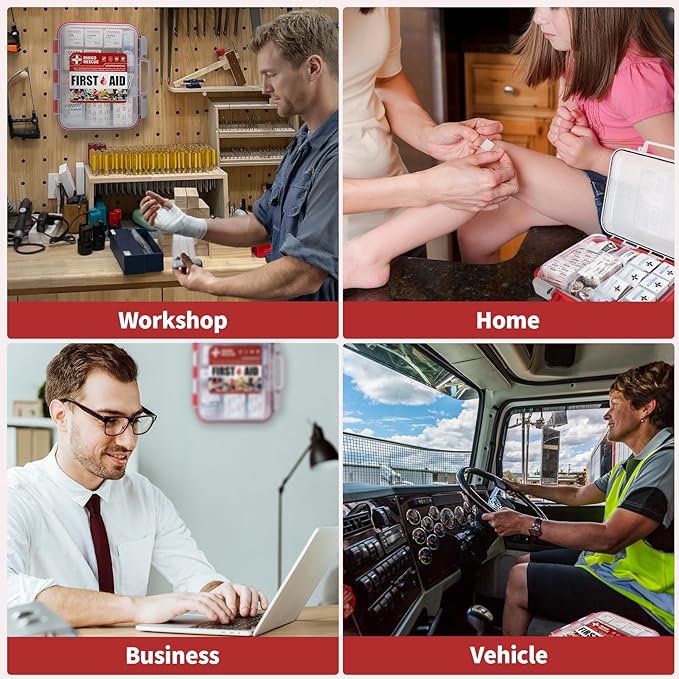 - 【Easy to Carry】Case measures (L)11.6" x (W)4" x (H)13", 3 lbs weight. The multifunctional first aid kit is elegantly designed and can be easily carried anywhere, such as outdoors, in the car, etc, to provide prompt first aid support to your family members.