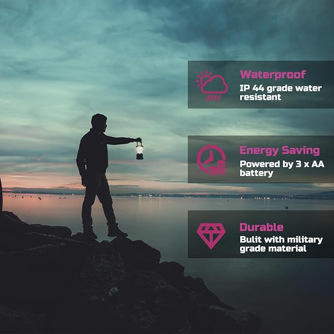 - ULTRA BRIGHT & SAFE: Designed with 30 energy-efficient LED for 360 degree lighting (97 sq.ft coverage), the latest COB technology features 350 lumens; Emits softer and brighter light; Use 3 AA batteries (not included); Safe to touch at low temperature