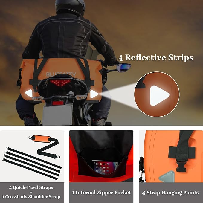 - Easy to Use & Quick Install: The dry duffel bag is equipped with four quick-release straps, you can fasten the duffle bag anywhere, it is convenient to fasten on motorcycles, boats, kayaks and Off-road vehicles, easy to clean & wipe.