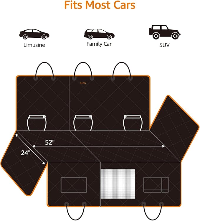 - Fit Most Car &Machine Washable & Storage- The size of the dog car seat cover bottom is 52”L X 24”W fits most car and suvs. After use, simply wipe it with a damp cloth or vacuum it, you can also do machine wash,and it will be as good as new in seconds! Folds up flat in its own carrying case when not in use.