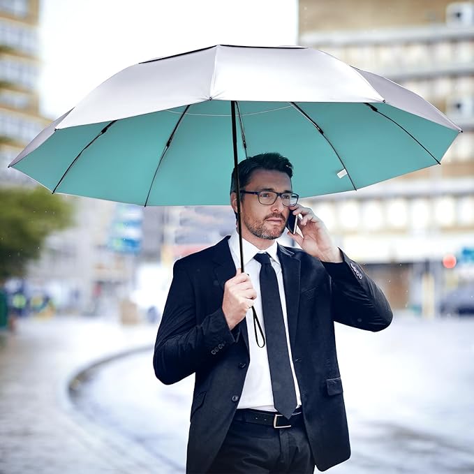- Portable and Comfortable: This large collapsible umbrella combines the golf umbrella and folding umbrella features, would be an excellent choice for the golf course. You can also use it for the business professional, travel, or daily life.